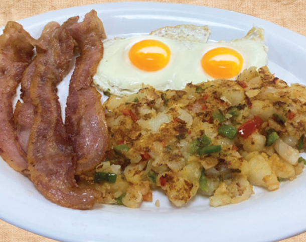 2 HUEVOS AL GUSTO, PAPA DE LA CASA Y TOCINO O JAMÓN 2 Eggs any style, home fries, bacon or ham