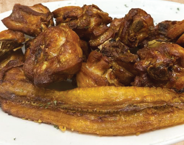ARROZ, FRIJOLES Y MADURO Chicken Cracklings Rice, beans & sweet plantain