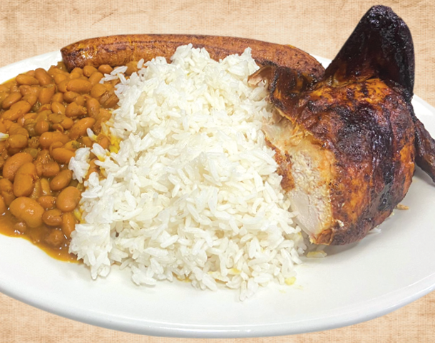 ARROZ, FRIJOL Y MADURO 1/2 Chicken Rice, Beans and sweet plantain