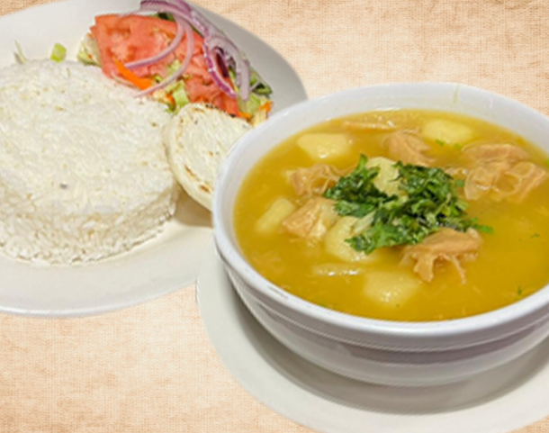 ARROZ, TOSTON Y ENSALADA Seafood Soup Rice, green plantain and salad